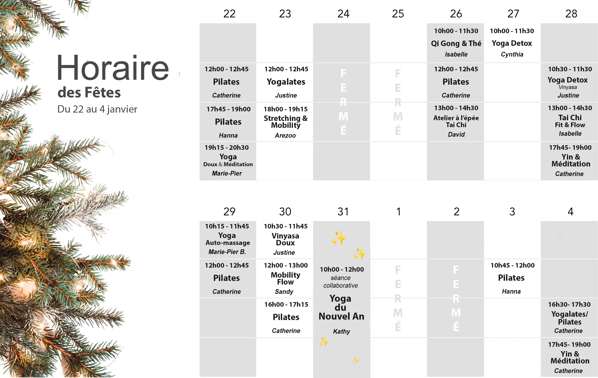 HORAIRE DES FÊTES